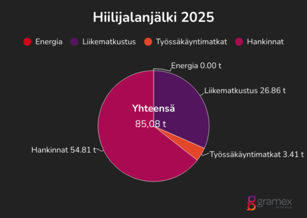 Gramex toteutti vuoden 2025 hiilijalanjälkilaskennan yhteistyössä Suomen ympäristöopisto SYKLIn kanssa ja VSME-raportoinnin Sitowisen kanssa.